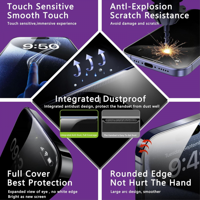 Performanță anti-amprentă: Strat oleofobic ce respinge urmele de degete
