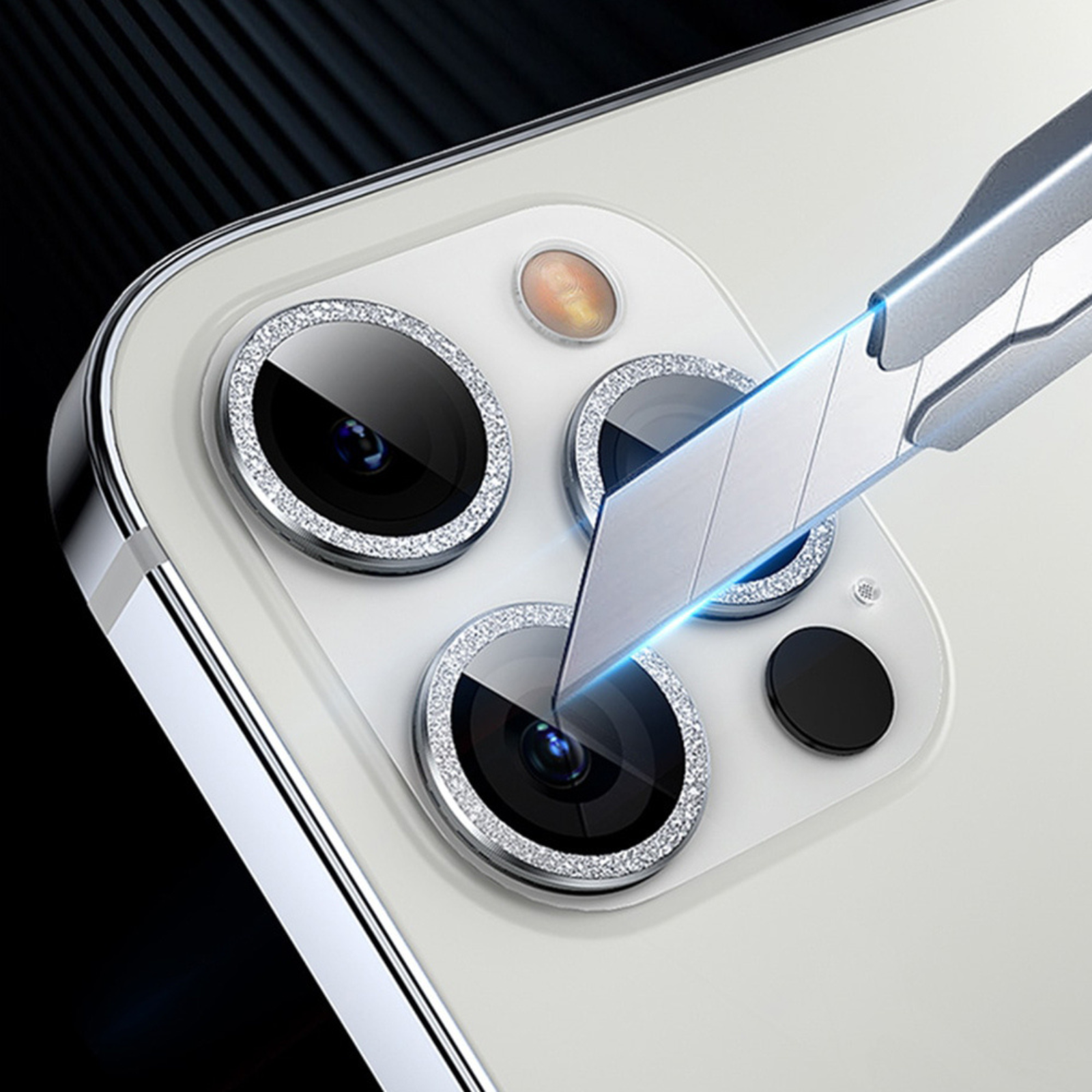 Protectie Camera Sticla Securizata si margini de Aluminiu Silver-Diamond Style pentru iPhone
