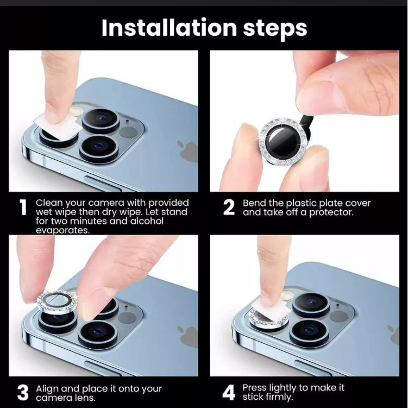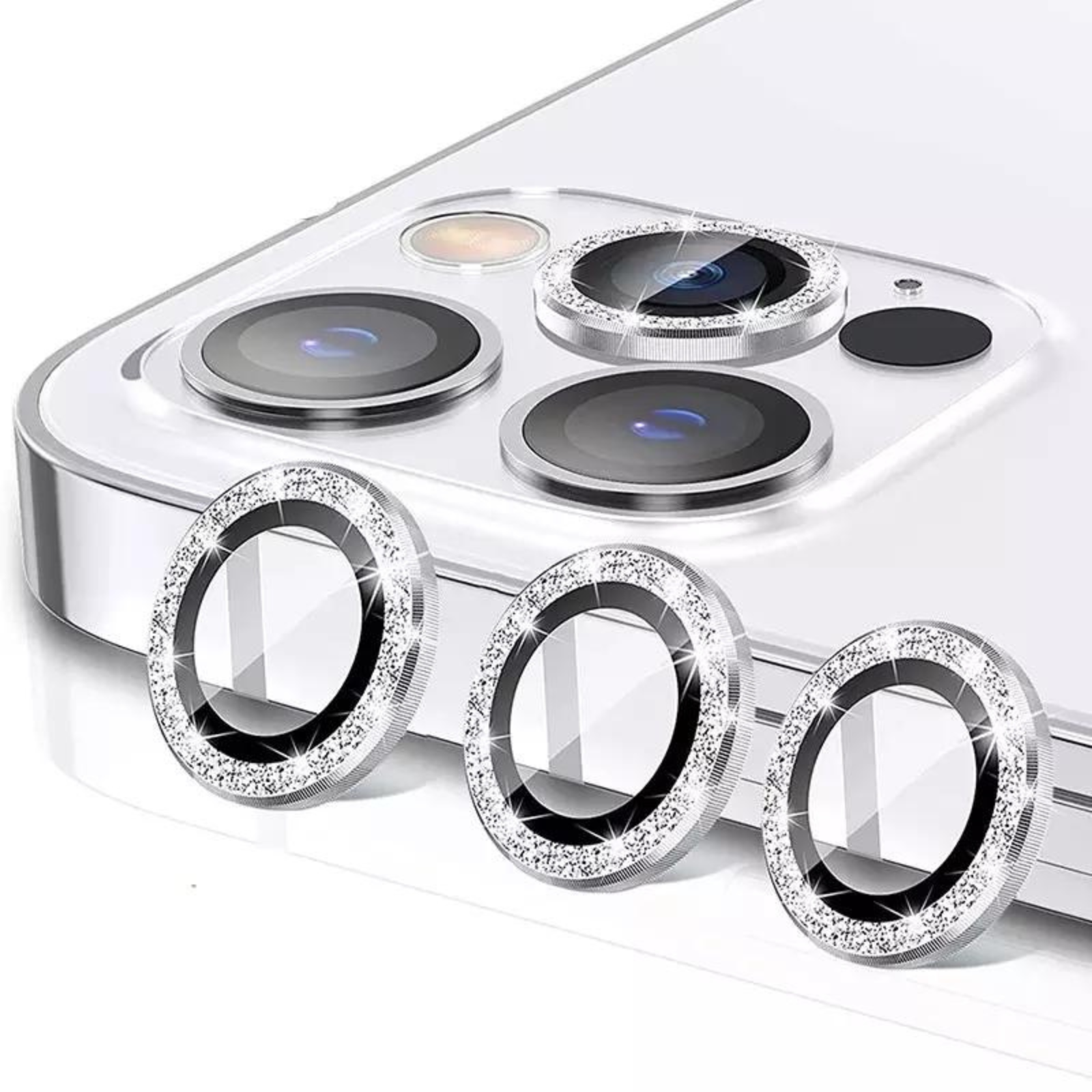 Protectie Camera Sticla Securizata si margini de Aluminiu Silver-Diamond Style pentru iPhone