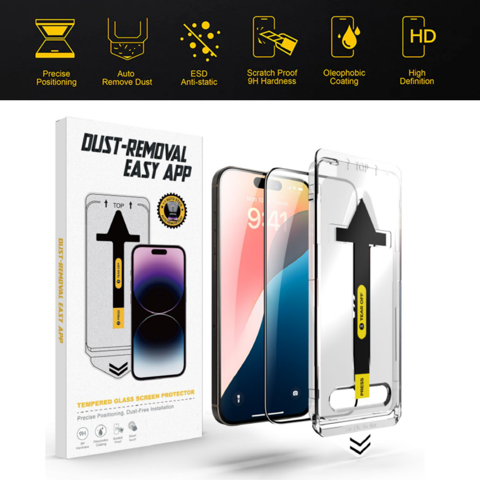 Compatible with iPhone Kit Folie Sticla HD, New Dust Removal Easy App pentru iPhone 15 Plus/ 16 Plus