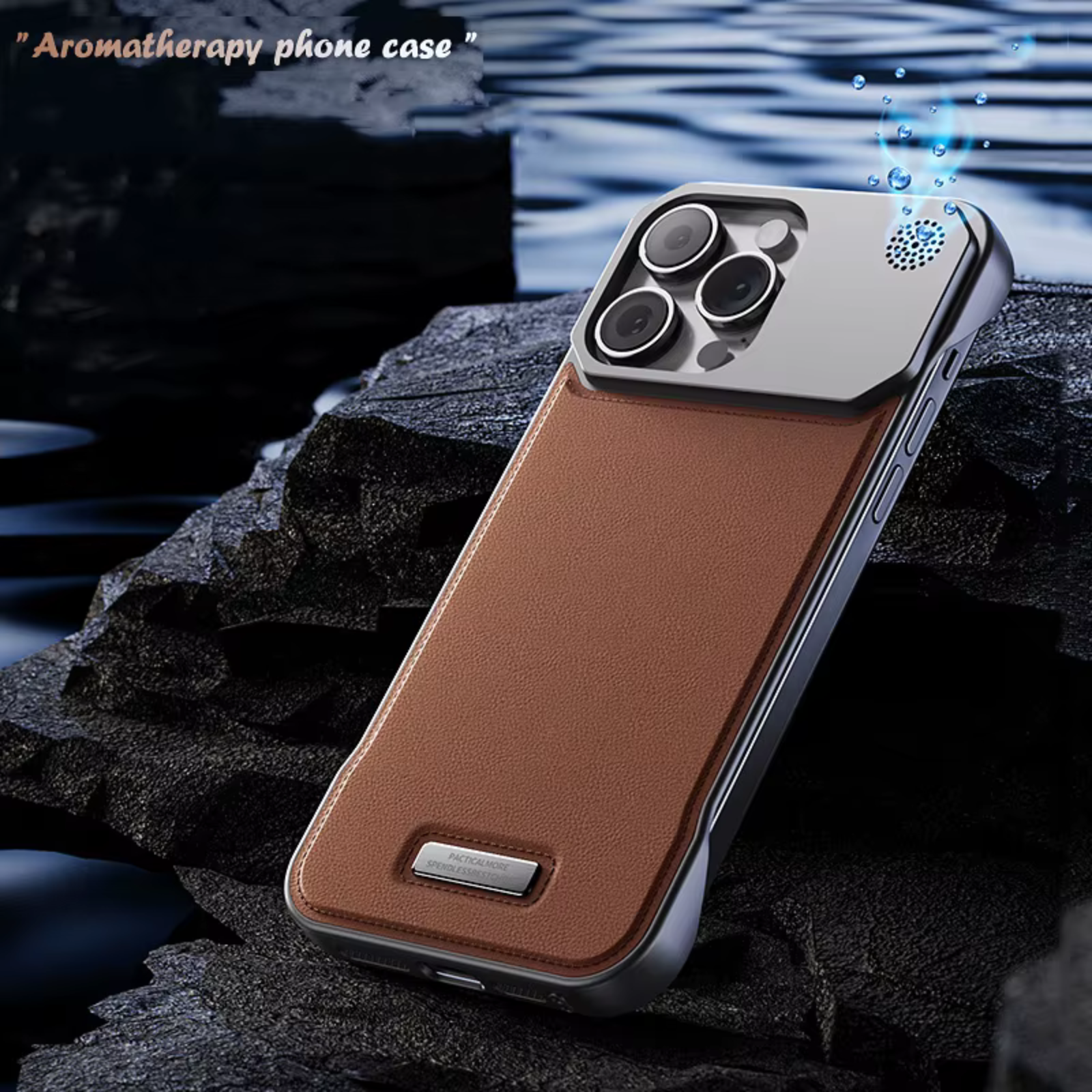 Husă pentru iPhone din Aluminiu Dur și Piele cu MagSafe – Brown