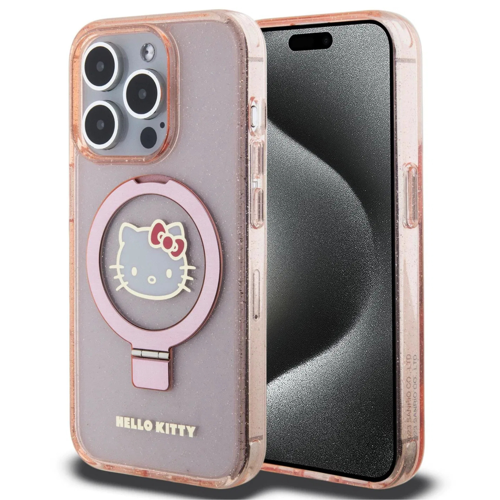 Adaugă strălucire și funcționalitate telefonului tău cu Husa Hello Kitty IML Ringstand Glitter Kitty Head Logo MagSafe pentru iPhone 15 Pro Max. Cu un design sofisticat, accente glitter și un suport inel integrat, această husă combină protecția premium cu un stil unic Hello Kitty. Compatibilitatea cu MagSafe o face perfectă pentru utilizarea zilnică.