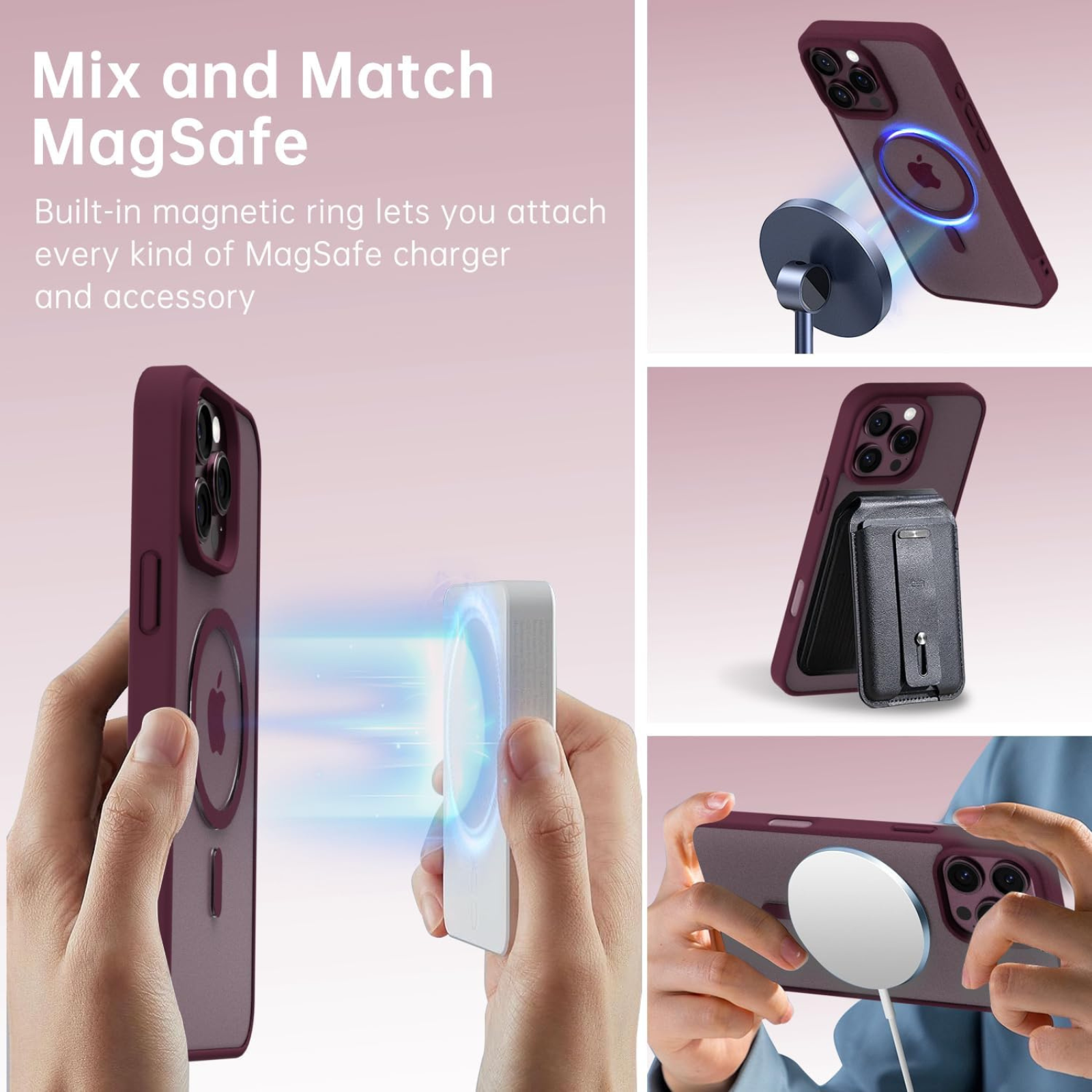 Compatible with iPhone Husa pentru iPhone 16 Pro, Crystal Clear MagSafe, Wine Red