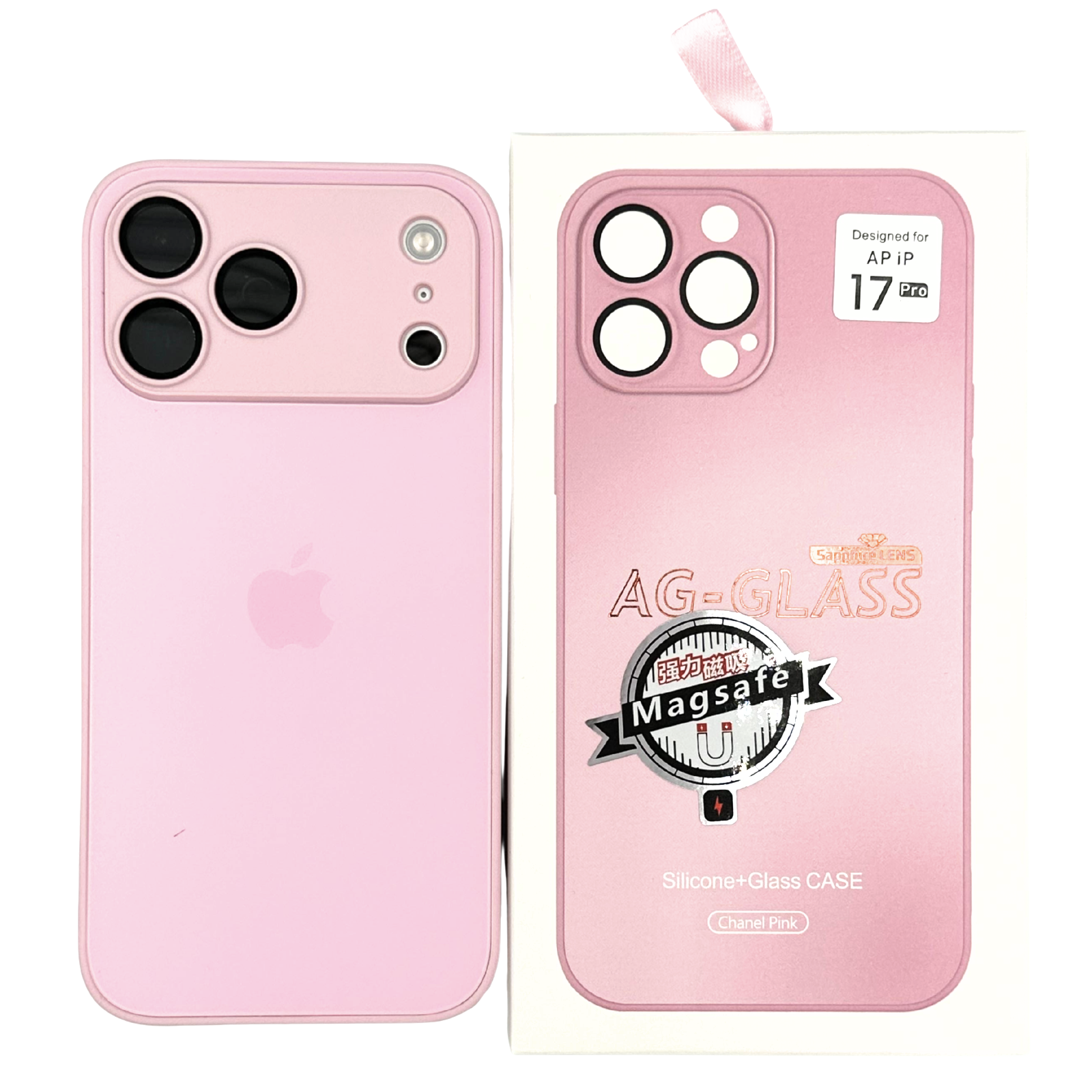 Husa iPhone 17 Pro, AG Glass MagSafe, Sticla si Silicon cu Protectie Lentile Camera, Chanel Pink - Mat