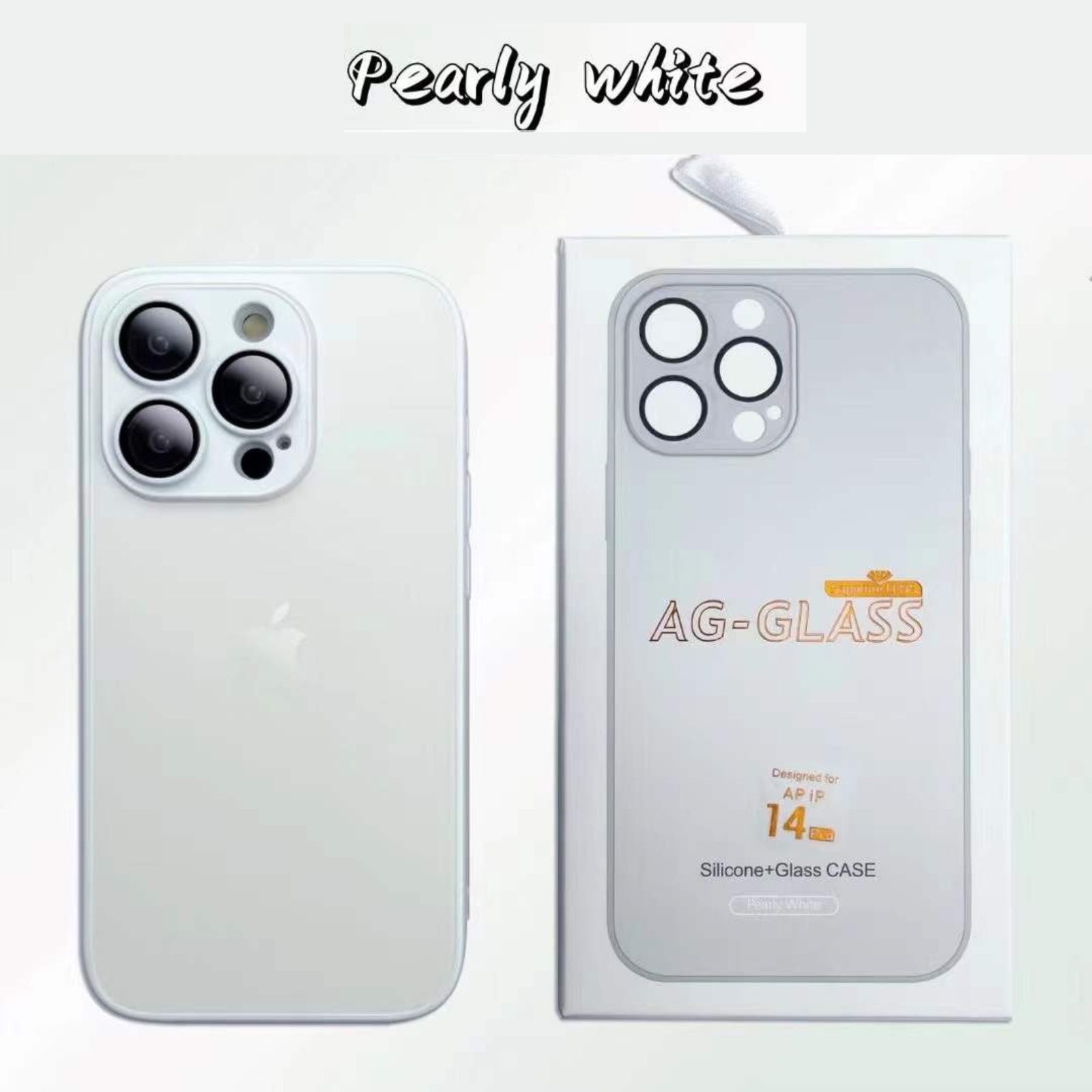 Husa din Sticla si Silicon cu Protectie Lentile Camera pentru iPhone, Alb Perlat-Mat