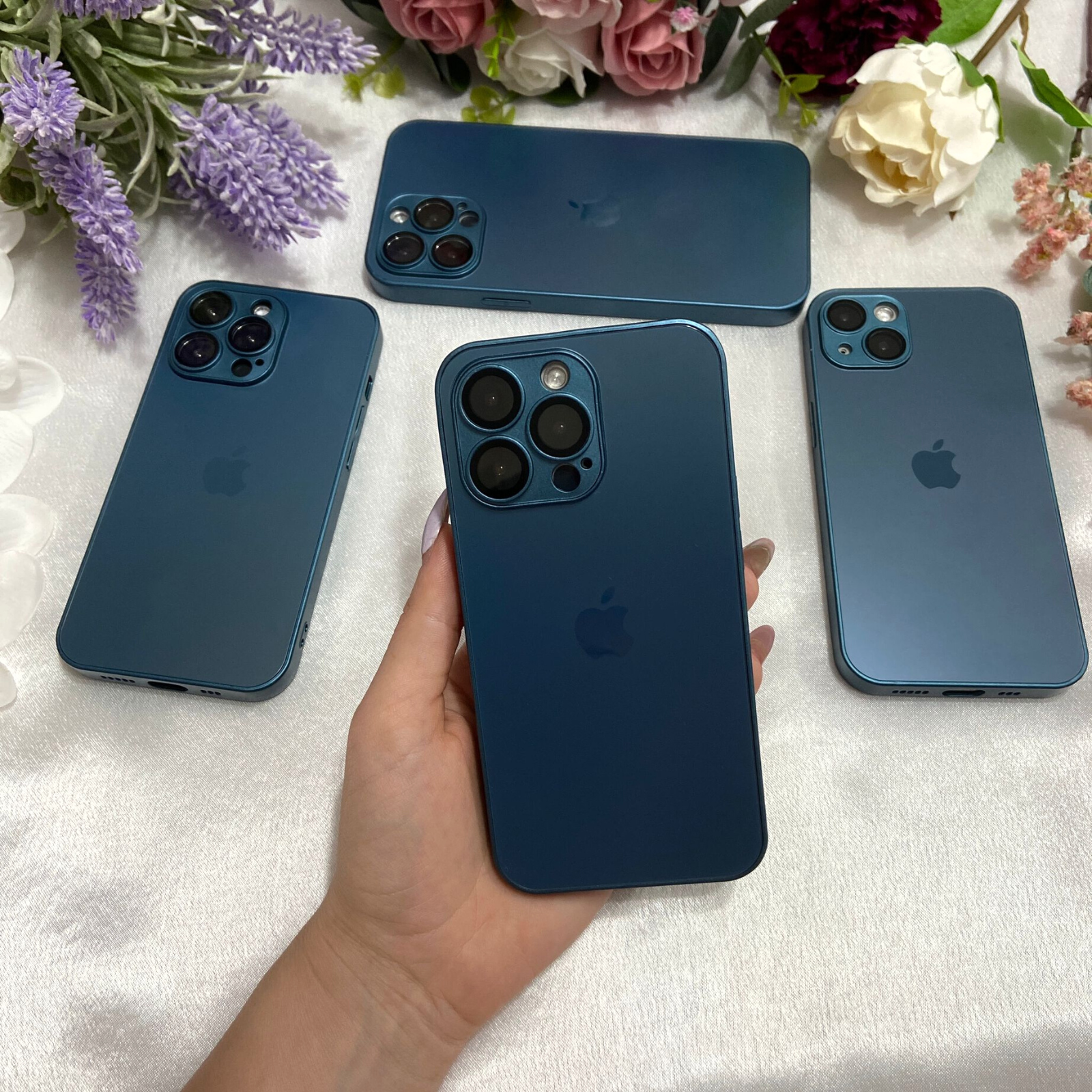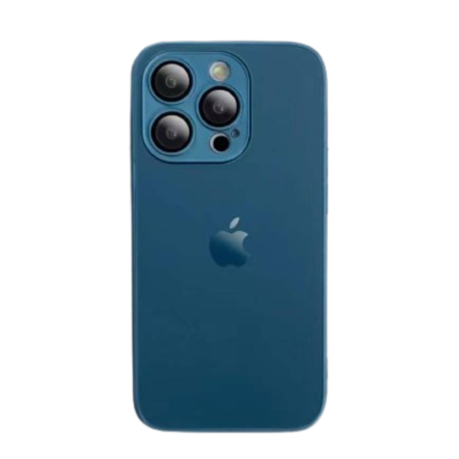 Husa din Sticla si Silicon cu Protectie Lentile Camera pentru iPhone, Navy Blue-Mat