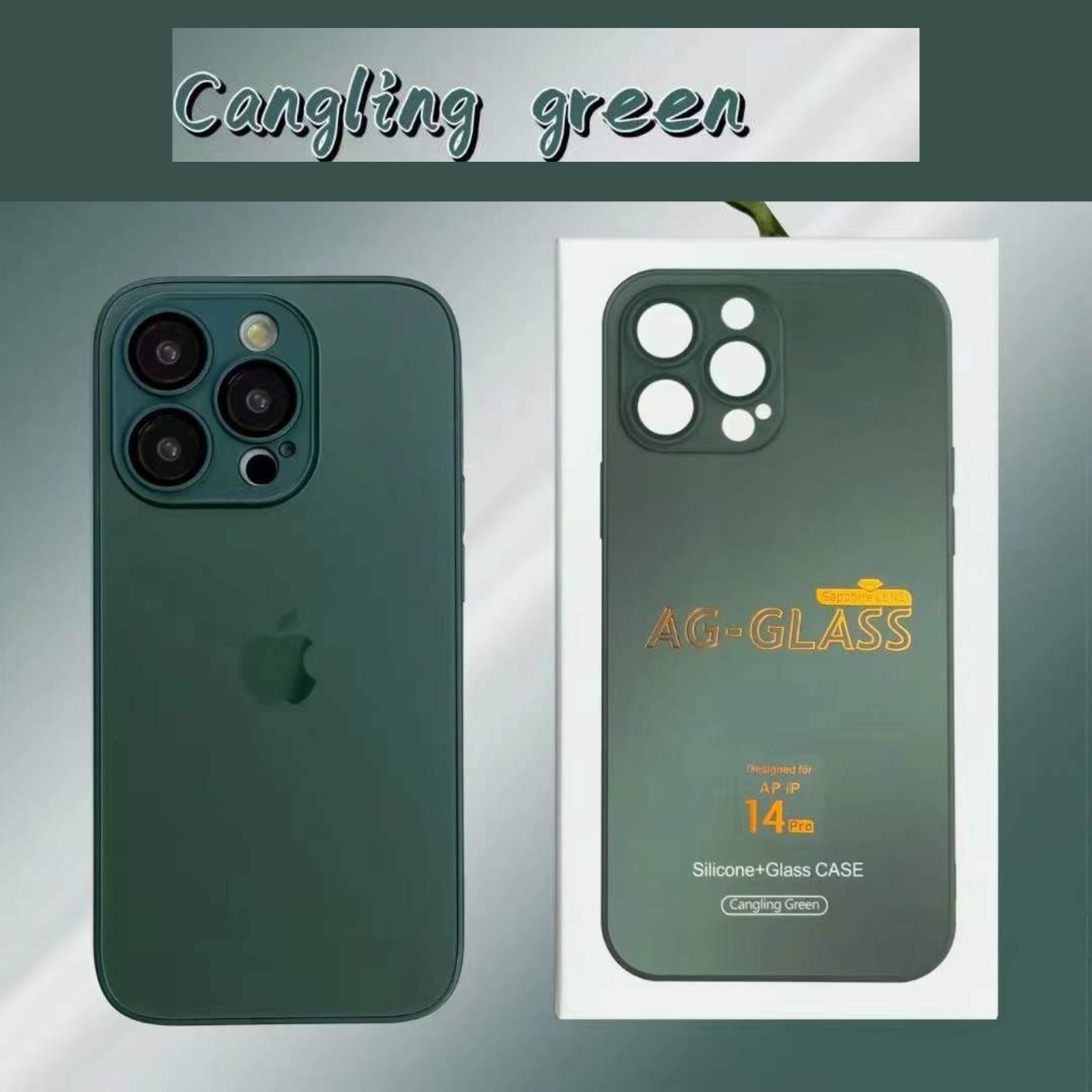 Husa din Sticla si Silicon cu Protectie Lentile Camera pentru iPhone, Verde-Mat
