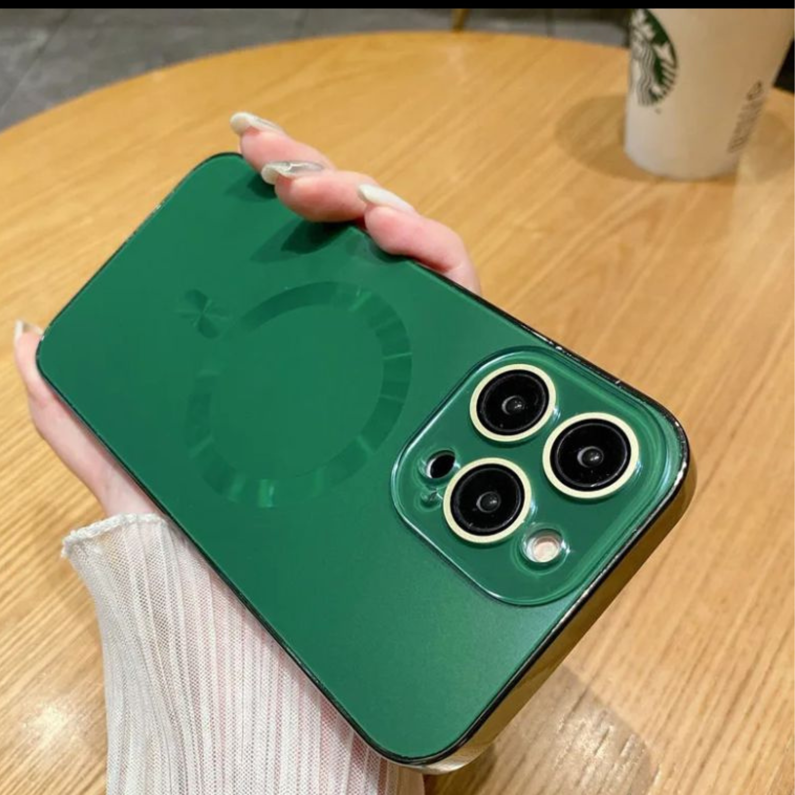 Husa iPhone 16, MagSafe AG Glass Shockproof - Protectie Camera - Verde Mat