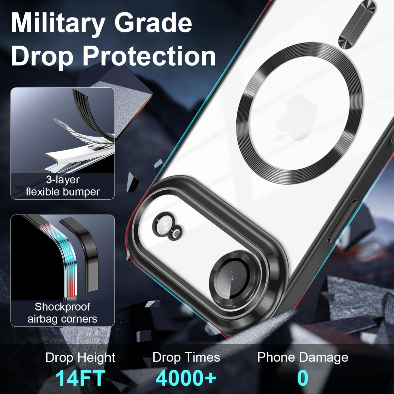 Echipată cu tehnologie MagSafe pentru o fixare magnetică sigură, aceasta include protecție pentru lentilele camerei și margini ranforsate anti-shock, asigurând siguranță maximă împotriva impacturilor.