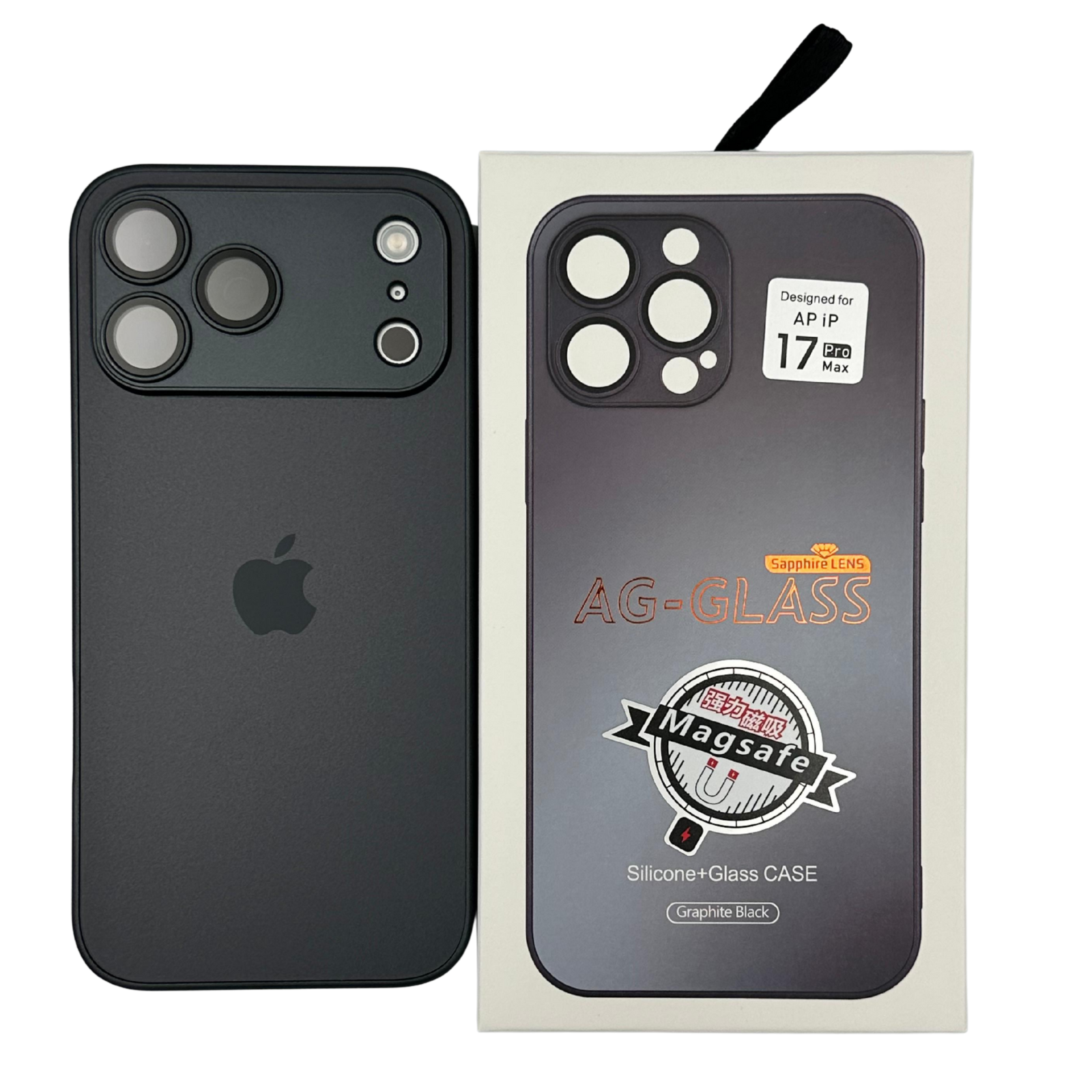 Husa iPhone 17 Pro Max, AG Glass MagSafe, Sticla si Silicon cu Protectie Lentile Camera, Negru Grafit - Mat