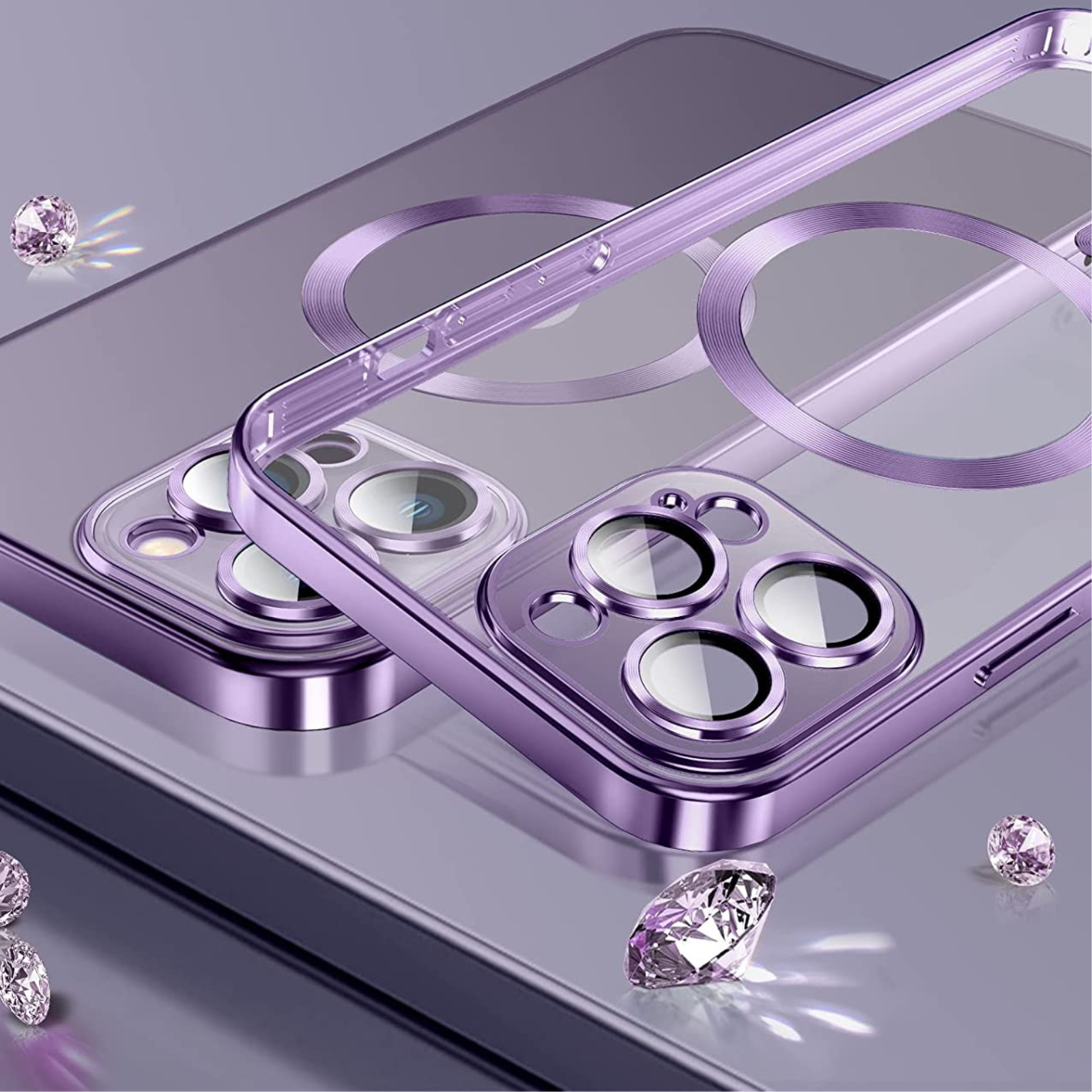 Compatible with iPhone Husa Luxury MagSafe cu Protectie Lentile Camera si Anti-Shock pentru iPhone 15 Pro, Purple